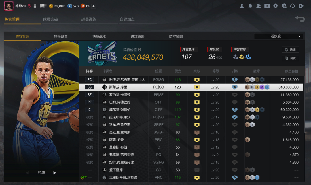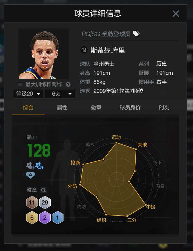 限制: 租号5次及以上 |装备描述:NBA2KOL2 4.38亿爽玩号,街头当家段位,6突满训库里(2紫6金投射徽章全覆盖)有专属街头阵容评分低街头好上分,当家段位