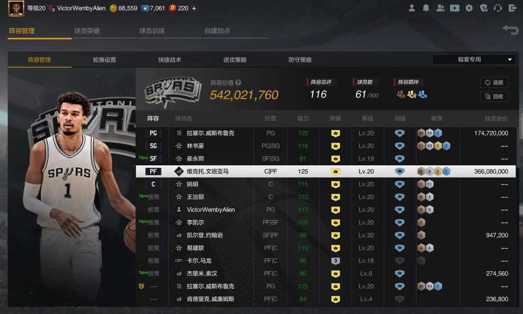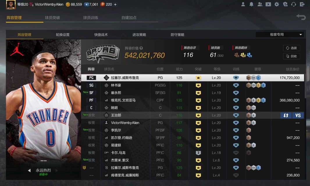 装备描述:【重要!!兄弟们体验完了,可以在评价留下言,想玩啥球星,我账号会按兄弟们的要求定期换一批球星!兄弟们的评价很重要,感谢大家~恶意退俱乐部违规者已通过平台封禁其支付账号,请各位注意违规后果。 租号就是图一个开心~遵守规则对大家都好,该号价值上万,已报北京市学院路派出所备案,一旦有账号异常、乱用月券、退俱乐部、导致封禁、立刻由警方立案,请不要冒法律风险,您的信息都在后台全程监管。】【【【租号的兄弟看清楚了,禁止强退扣除信誉积分,被扣除后平台后扣除你的租金!!!】】】最低价极品内线体验号,超多球星,各种满突悍将,可排位,各种街头悍将,适合车队~极品体验!!!10件衣服,热火火箭骑士复古球衣、满图自建篮板C、11个满特训!!几十个满图球星!!!满突文班亚马,满图时刻威少威斯布鲁克、满自建篮板C、等等,另有多个复刻球星基德、马龙、庄神,低价格,极品享受!欢迎体验!